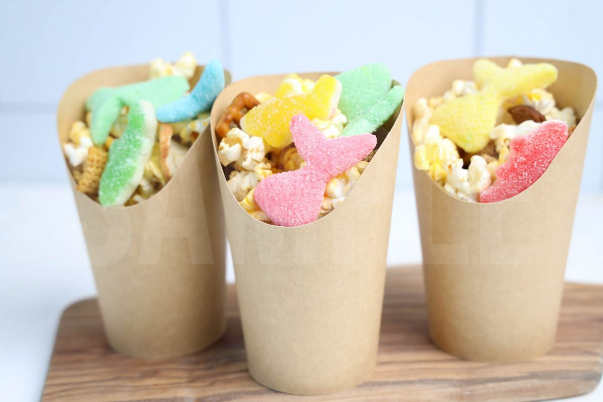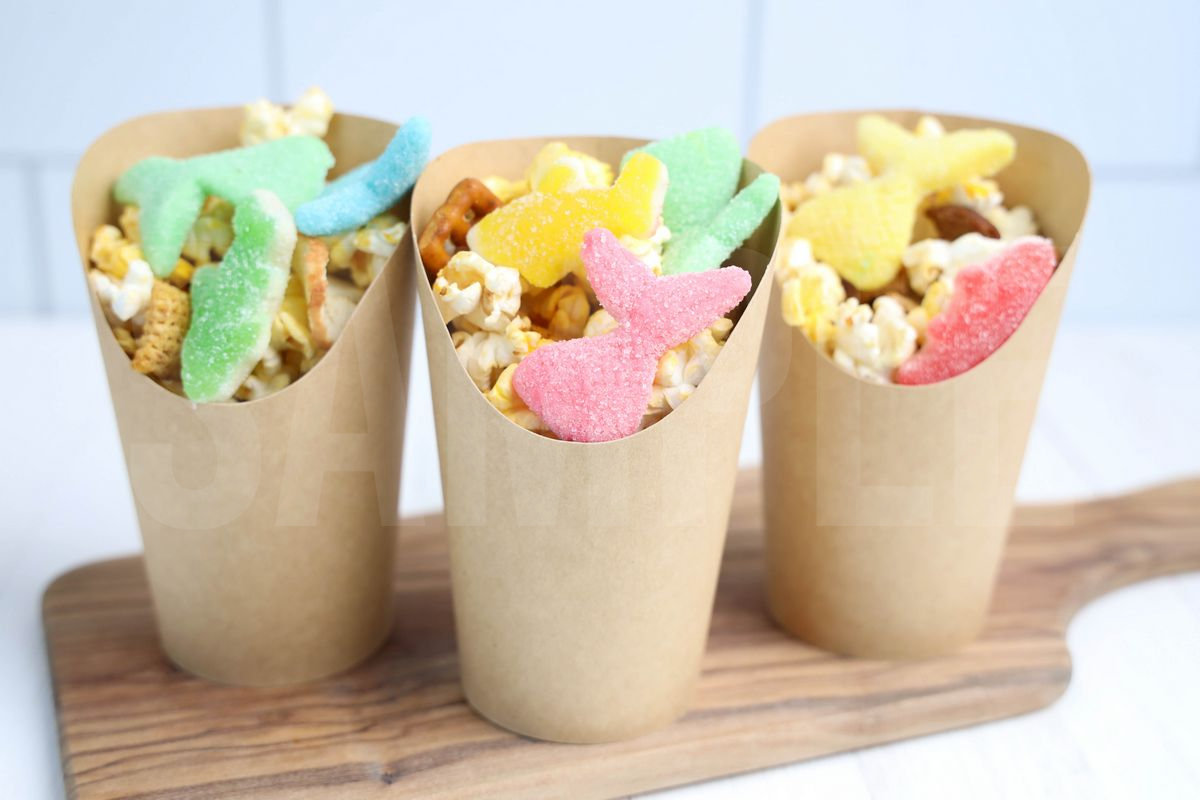 Sea Life Snack Cups is made with sea life gummies, popcorn, and chex mix. This is a semi exclusive recipe. The Sea Life Snack Cups comes in a brown fry cup with white wood backdrop. Set comes with 10 in process (in process are the same for all sets) and 18 final shots (finals are different for each set) along with recipe in text format. Both vertical and horizontal shots are available for social media. One set of four. Sample removed on finals.