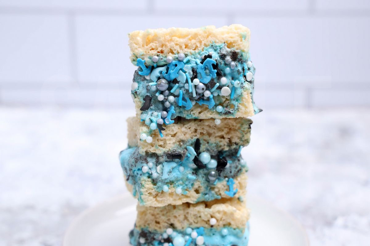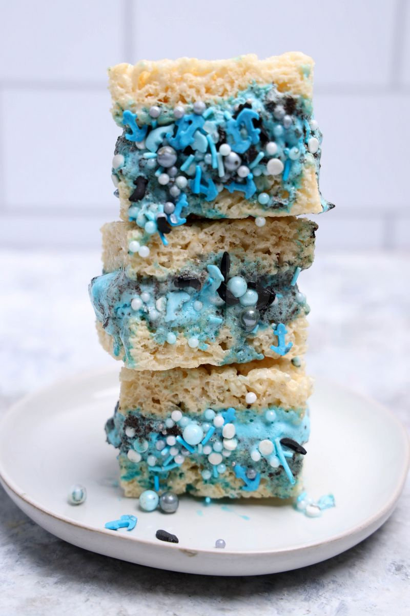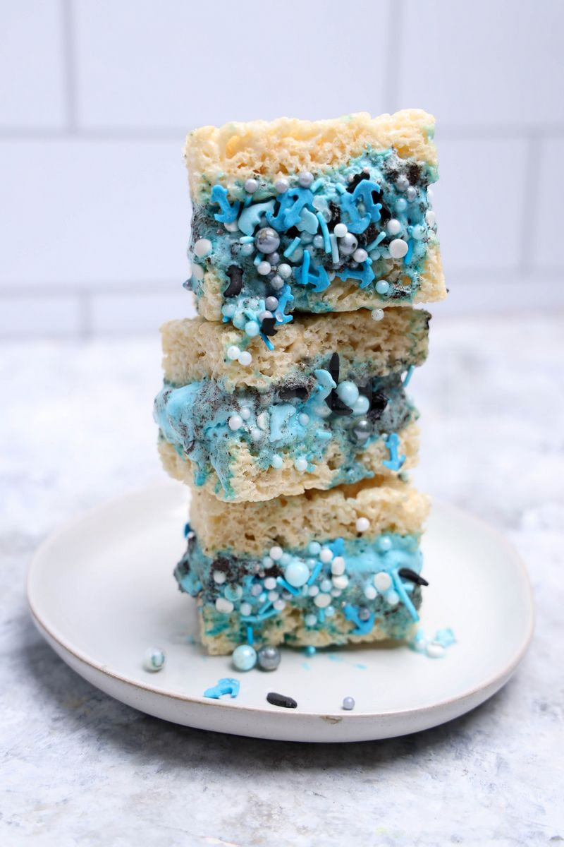 Sealife Rice Krispies Ice Cream Sandwiches is made with sea monster ice cream, rice krispies treats, and sealife sprinkles. This is a semi exclusive recipe. The Sealife Rice Krispies Ice Cream Sandwiches comes on a white plate with marble wood backdrop. Set comes with 10 in process (in process are the same for all sets) and 13 final shots (finals are different for each set) along with recipe in text format. Both vertical and horizontal shots are available for social media. One set of four. Sample removed on finals.
