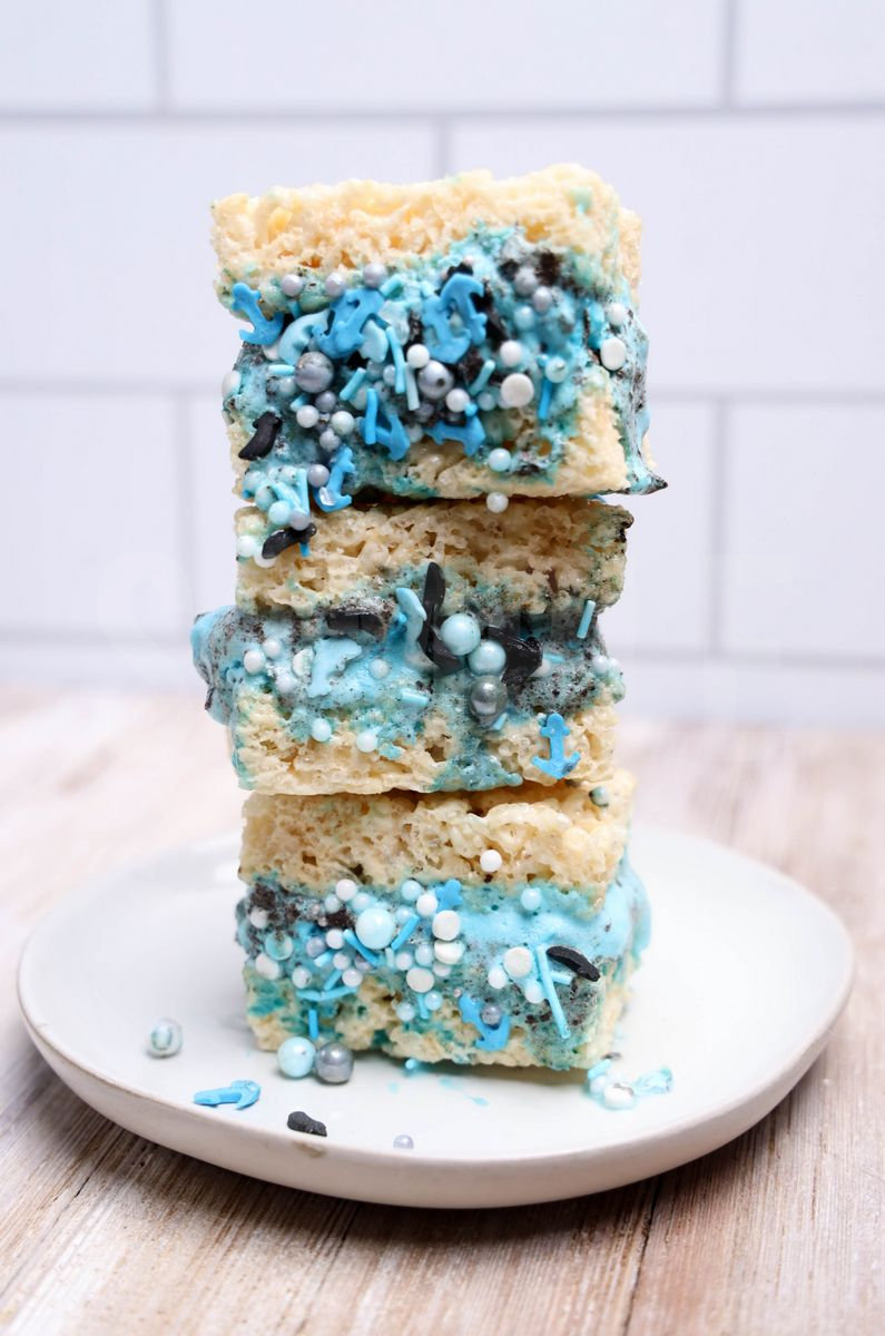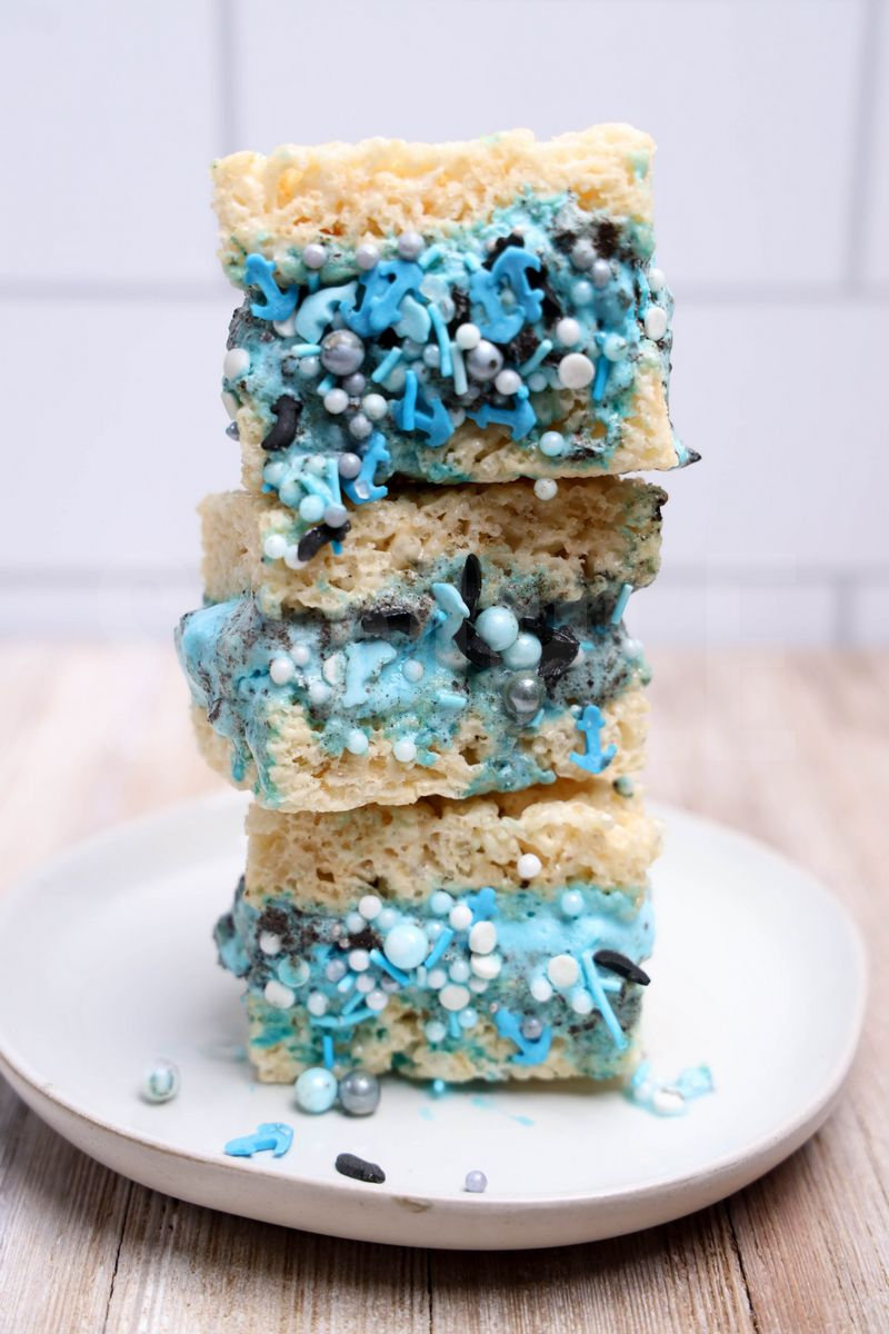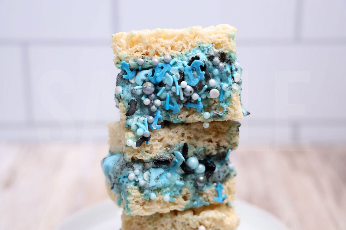 Sealife Rice Krispies Ice Cream Sandwiches is made with sea monster ice cream, rice krispies treats, and sealife sprinkles. This is a semi exclusive recipe. The Sealife Rice Krispies Ice Cream Sandwiches comes on a white plate with rustic wood backdrop. Set comes with 10 in process (in process are the same for all sets) and 15 final shots (finals are different for each set) along with recipe in text format. Both vertical and horizontal shots are available for social media. One set of four. Sample removed on finals.