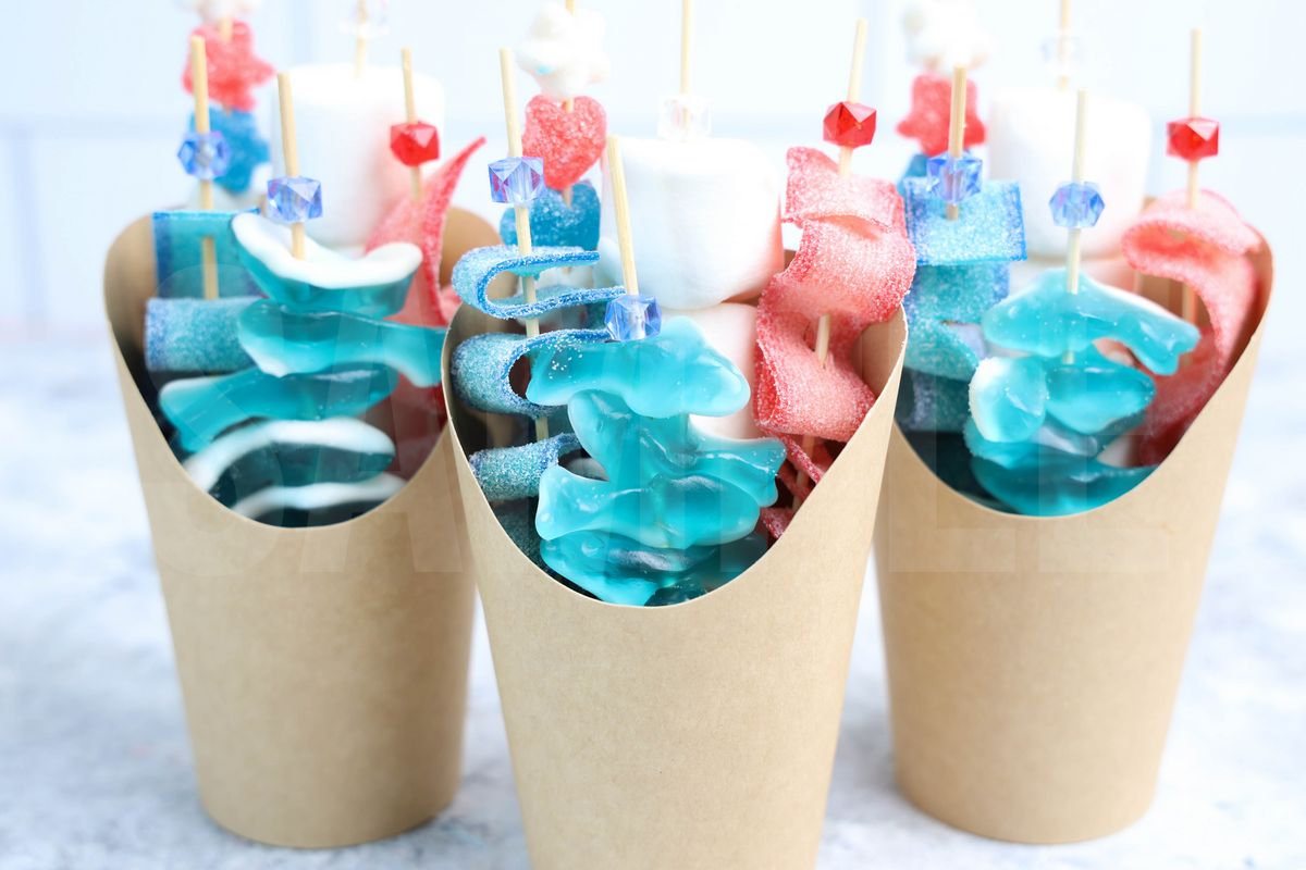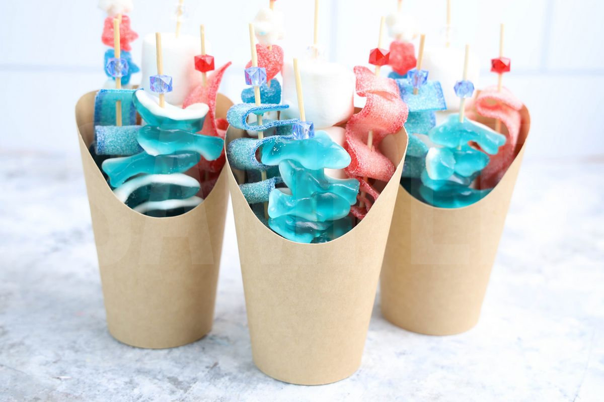 Shark Candy Cups is made with sour strips, shark gummies, star gummies, and marshmallows. This is a semi exclusive recipe. The Shark Candy Cups comes in a brown fry cup with marble wood backdrop. Set comes with 12 in process (in process are the same for all sets) and 18 final shots (finals are different for each set) along with recipe in text format. Both vertical and horizontal shots are available for social media. One set of four. Sample removed on finals.