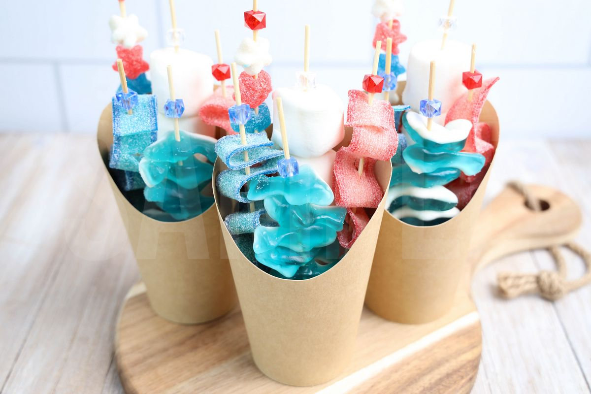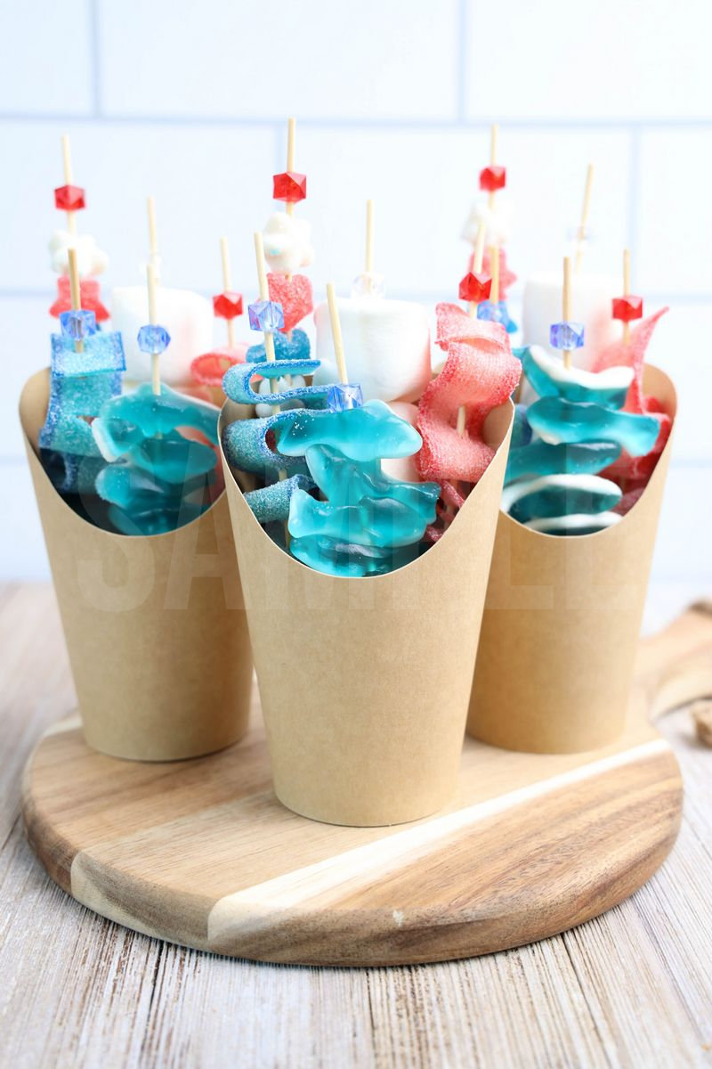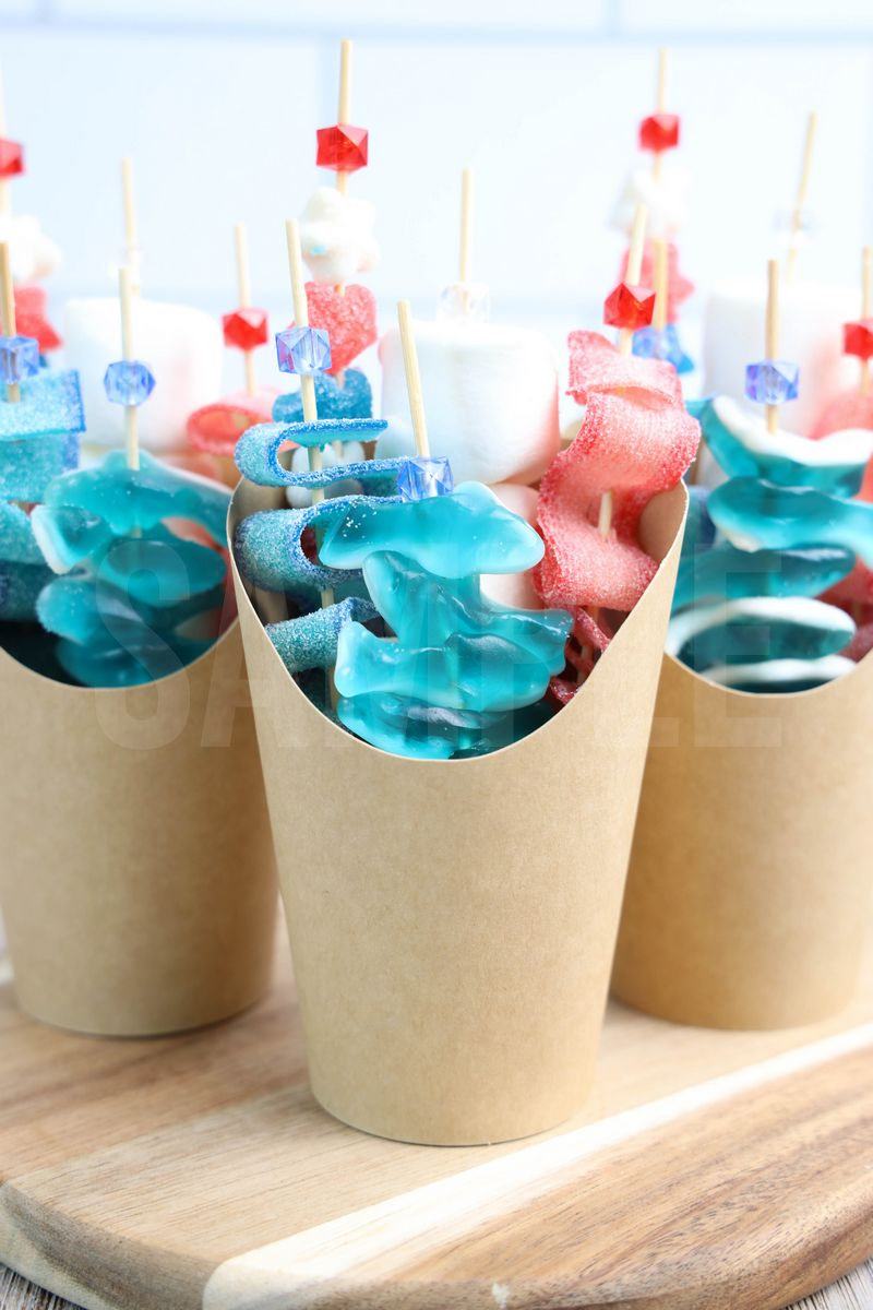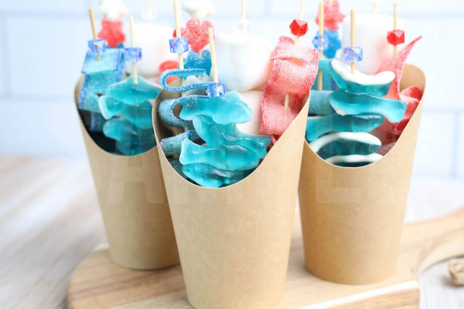 Shark Candy Cups is made with sour strips, shark gummies, star gummies, and marshmallows. This is a semi exclusive recipe. The Shark Candy Cups comes in a brown fry cup with rustic wood backdrop. Set comes with 12 in process (in process are the same for all sets) and 24 final shots (finals are different for each set) along with recipe in text format. Both vertical and horizontal shots are available for social media. One set of four. Sample removed on finals.