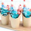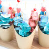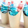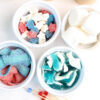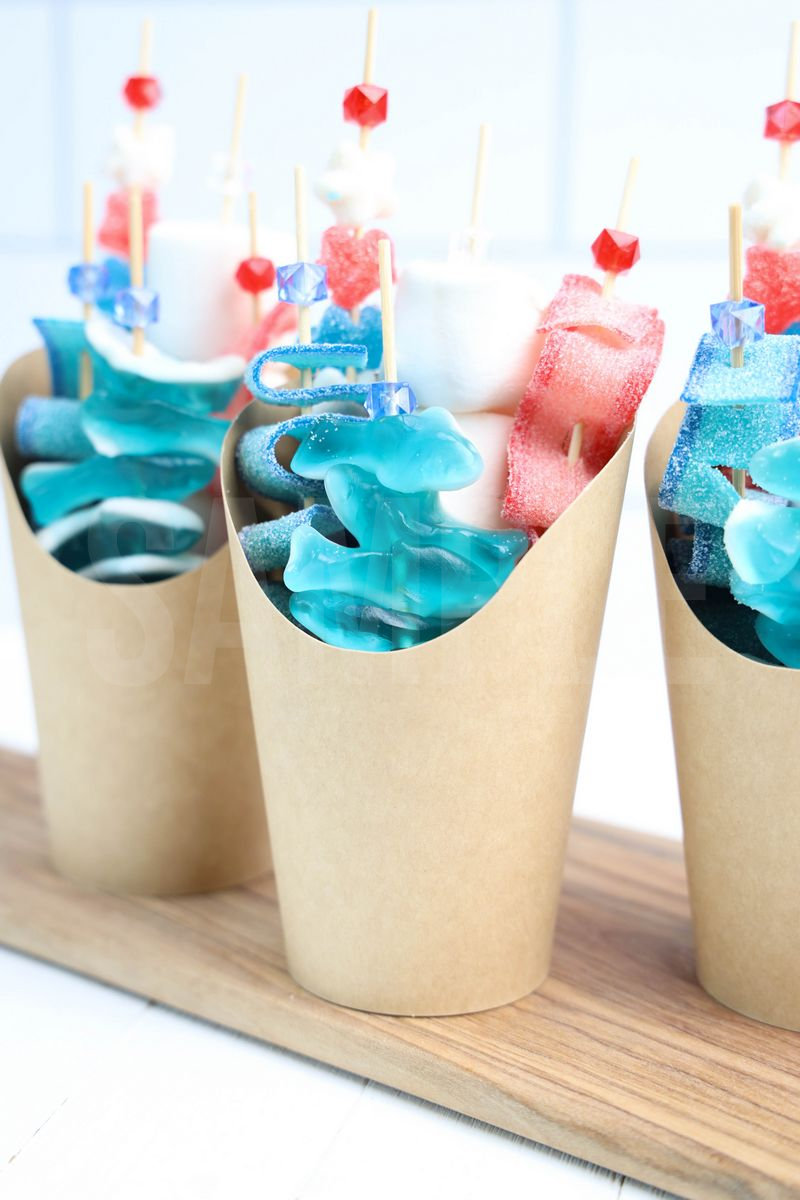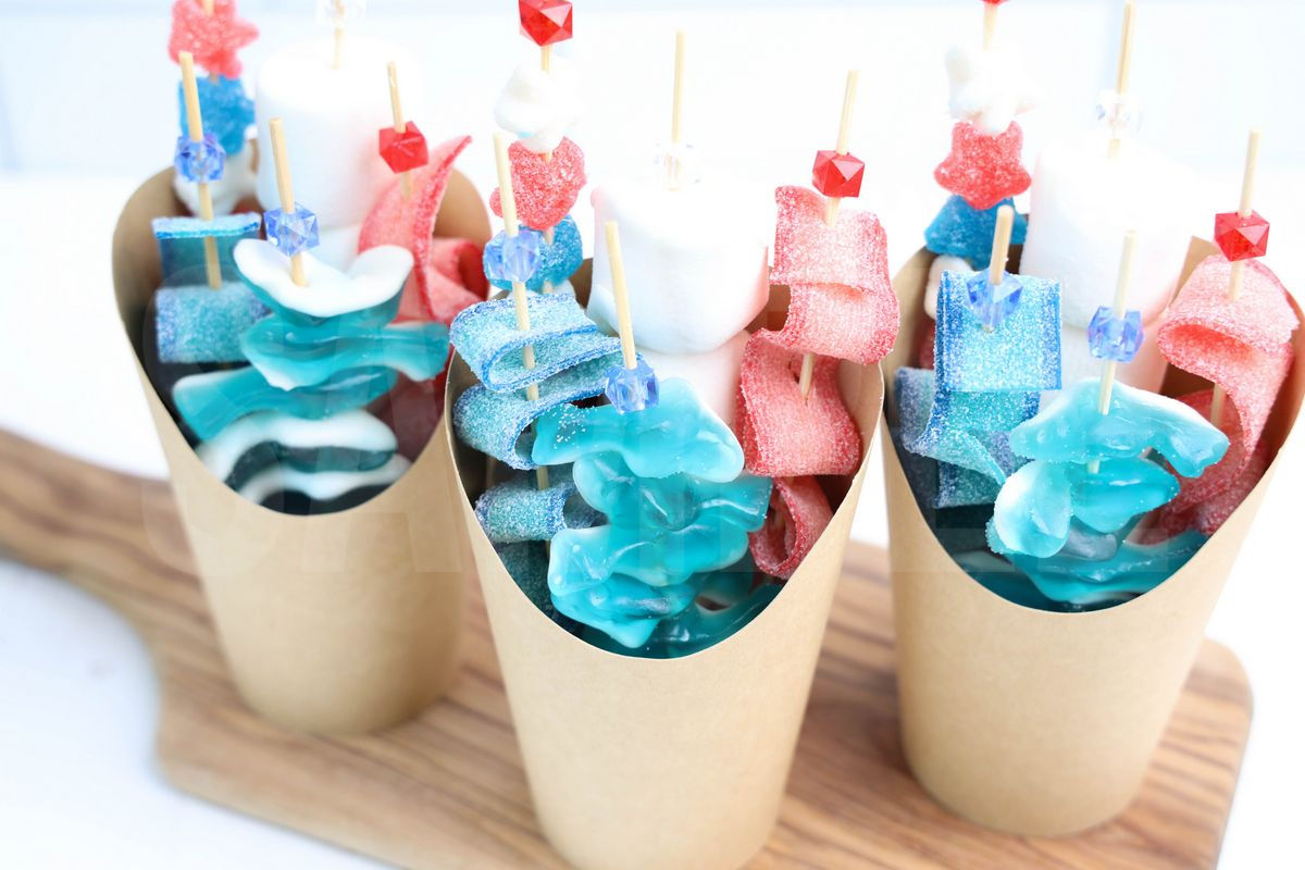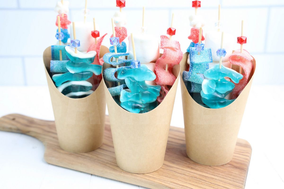 Shark Candy Cups is made with sour strips, shark gummies, star gummies, and marshmallows. This is a semi exclusive recipe. The Shark Candy Cups comes in a brown fry cup with white wood backdrop. Set comes with 12 in process (in process are the same for all sets) and 20 final shots (finals are different for each set) along with recipe in text format. Both vertical and horizontal shots are available for social media. One set of four. Sample removed on finals.