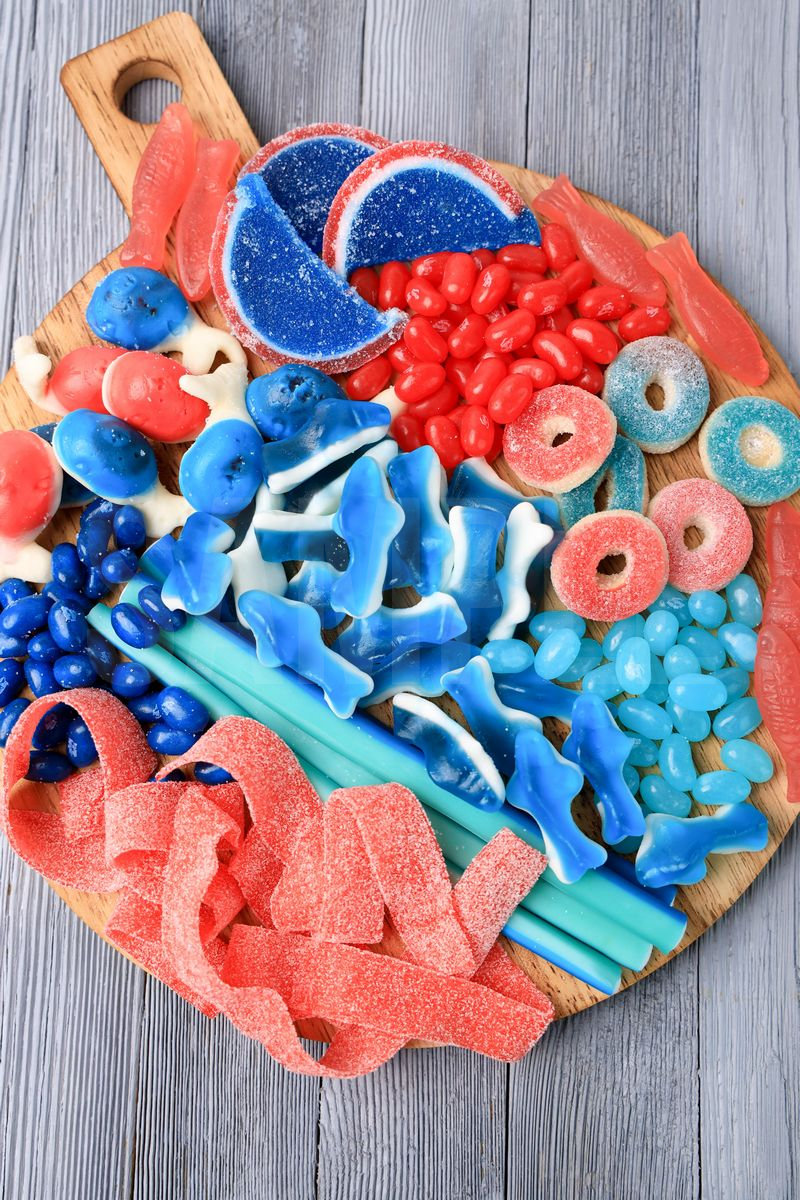 Shark Charcuterie Board is made with gummy sharks, gummy fish, and gummy whales. This is a semi exclusive recipe. The Shark Charcuterie Board comes on a wood charcuterie board on a gray wood backdrop. Set comes with 8 in process (in process are the same for all sets) and 18 final shots (finals are different for each set) along with recipe in text format. Both vertical and horizontal shots are available for social media. One set of four. Sample removed on finals.