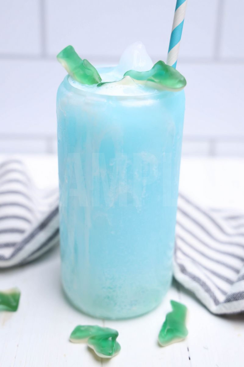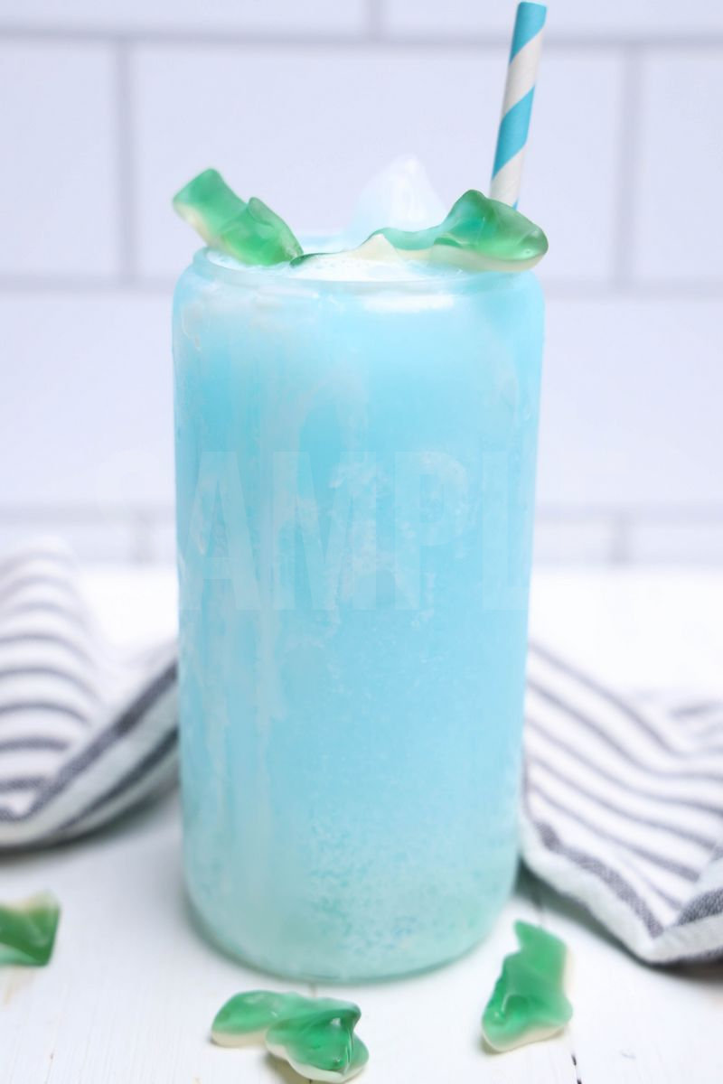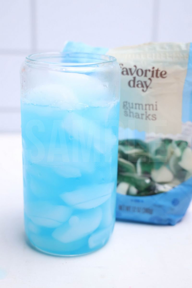 Shark Dirty Soda is made with 7-UP, blue Gatorade, gummi sharks, and coconut creamer. This is a semi exclusive recipe. The Shark Dirty Soda comes in a glass on a white wood backdrop. Set comes with 8 in process (in process are the same for all sets) and 15 final shots (finals are different for each set) along with recipe in text format. Both vertical and horizontal shots are available for social media. One set of three. Sample removed on finals.