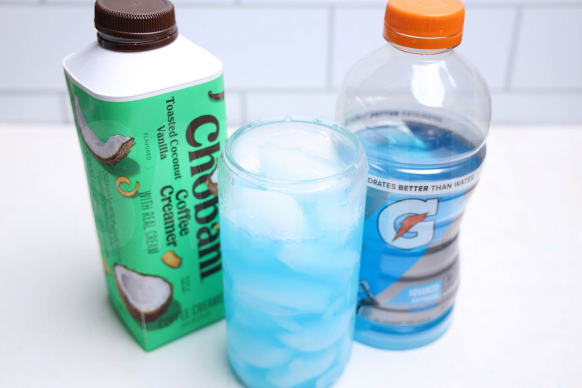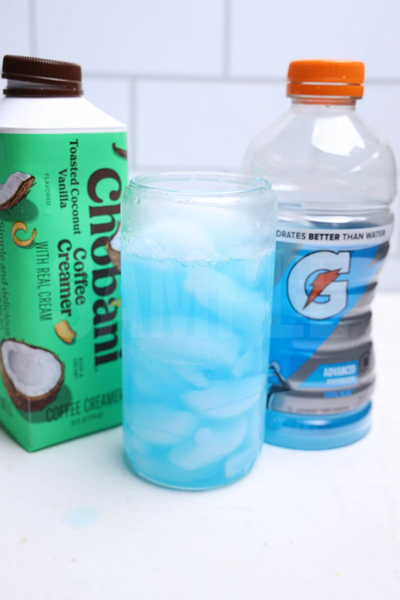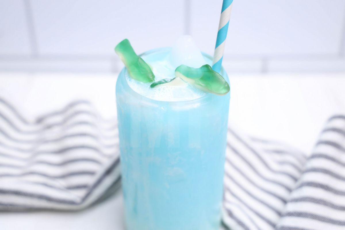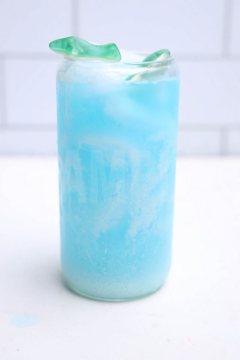 Shark Dirty Soda is made with 7-UP, blue Gatorade, gummi sharks, and coconut creamer. This is a semi exclusive recipe. The Shark Dirty Soda comes in a glass on a white wood backdrop. Set comes with 8 in process (in process are the same for all sets) and 15 final shots (finals are different for each set) along with recipe in text format. Both vertical and horizontal shots are available for social media. One set of three. Sample removed on finals.