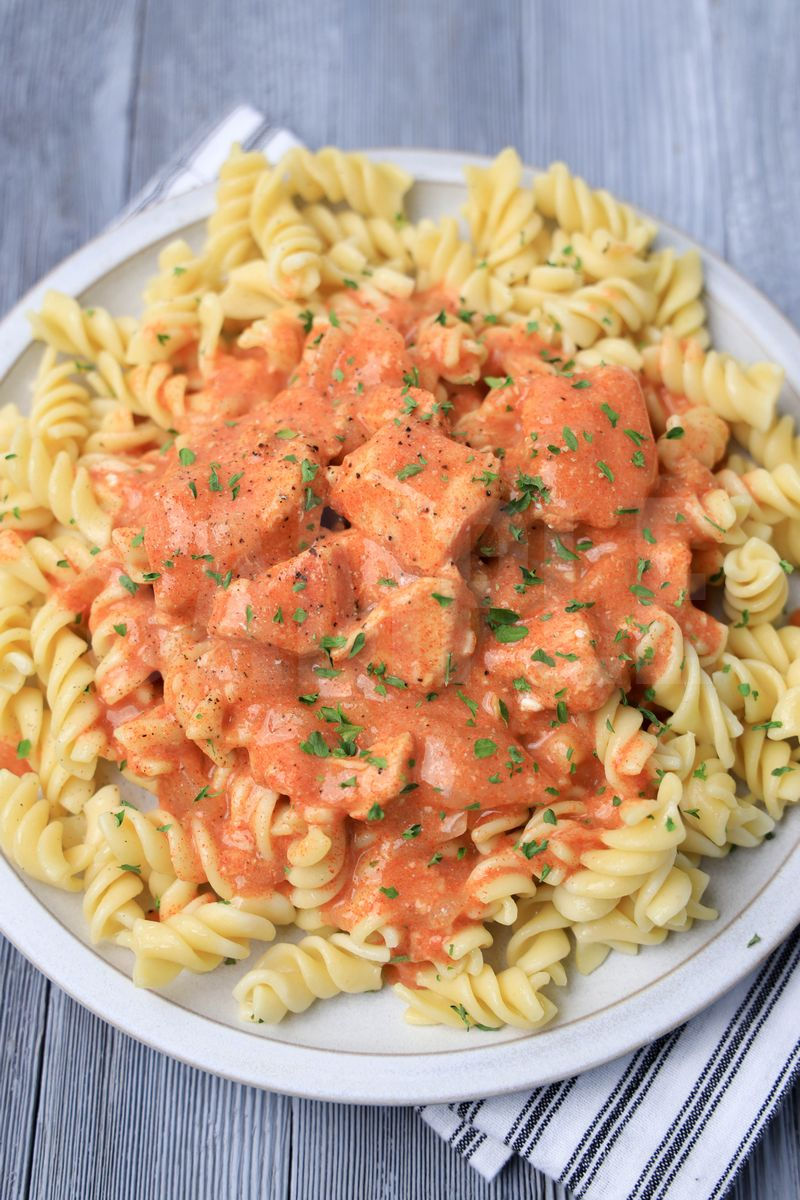 Slow Cooker Chicken Paprika is made with chicken, paprika, rotini, and sour cream. This is a semi exclusive recipe. The Slow Cooker Chicken Paprika comes on a white plate with a white striped napkin on a gray wood backdrop. Set comes with 8 in process (in process are the same for all sets) and 15 final shots (finals are different for each set) along with recipe in text format. Both vertical and horizontal shots are available for social media. One set of four. Sample removed on finals.