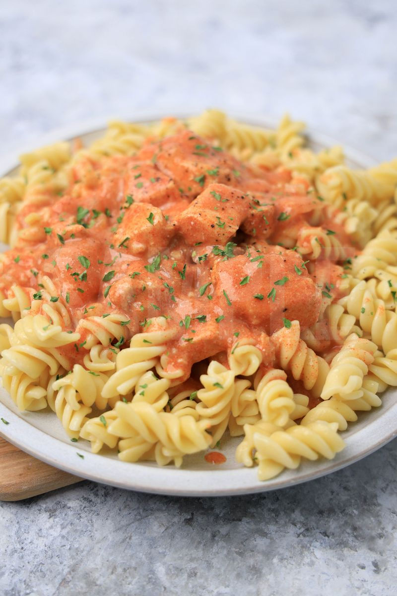 Slow Cooker Chicken Paprika is made with chicken, paprika, rotini, and sour cream. This is a semi exclusive recipe. The Slow Cooker Chicken Paprika comes on a white plate with a olive wood board on a marble backdrop. Set comes with 8 in process (in process are the same for all sets) and 18 final shots (finals are different for each set) along with recipe in text format. Both vertical and horizontal shots are available for social media. One set of four. Sample removed on finals.