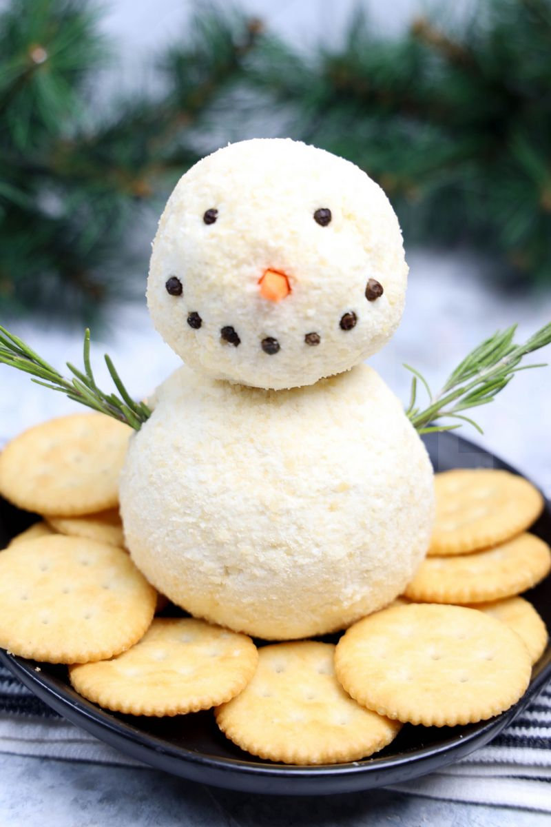 Snowman Cheese Ball is made with parmesan, cream cheese, carrot, peppercorns, and rosemary. This is a semi exclusive recipe. The Snowman Cheese Ball comes on a white plate with marble wood backdrop. Set comes with 11 in process (in process are the same for all sets) and 16 final shots (finals are different for each set) along with recipe in text format. Both vertical and horizontal shots are available for social media. One set of four. Sample removed on finals.