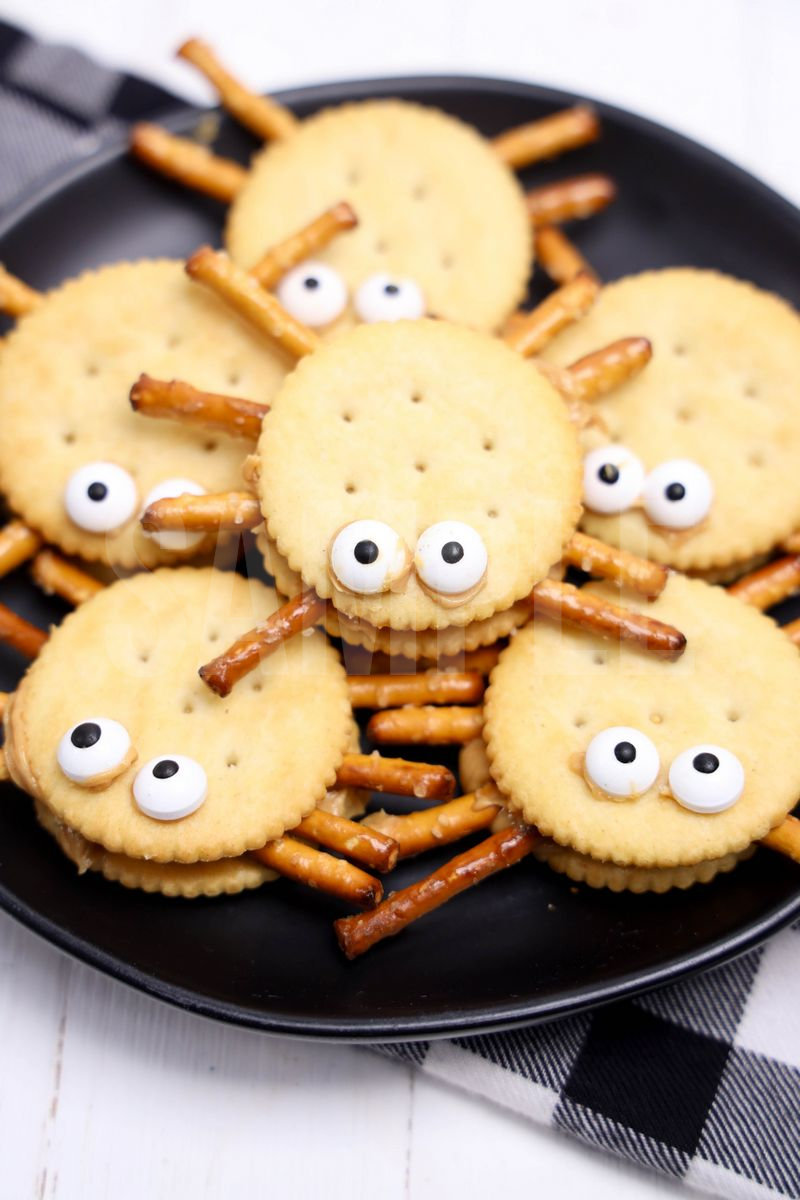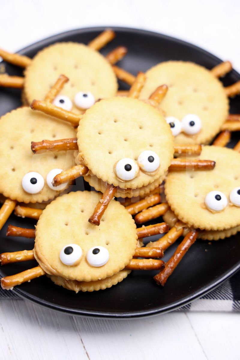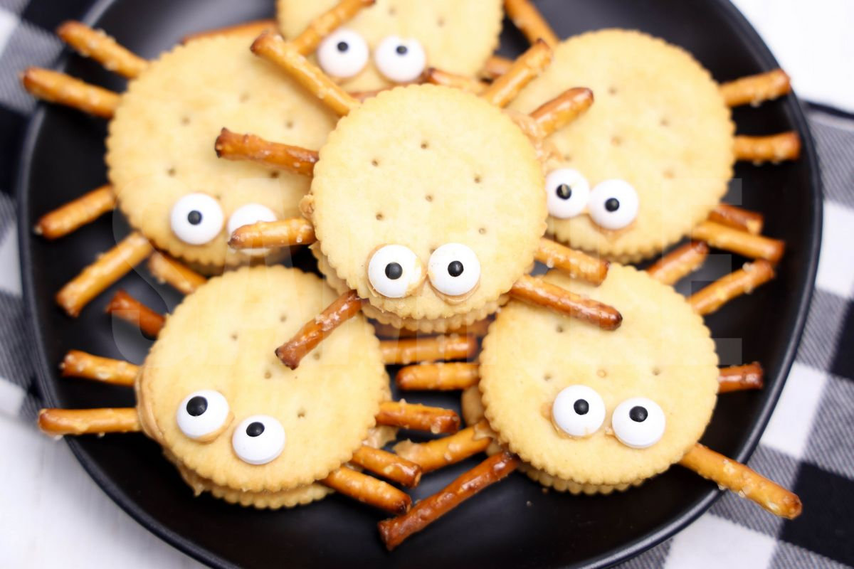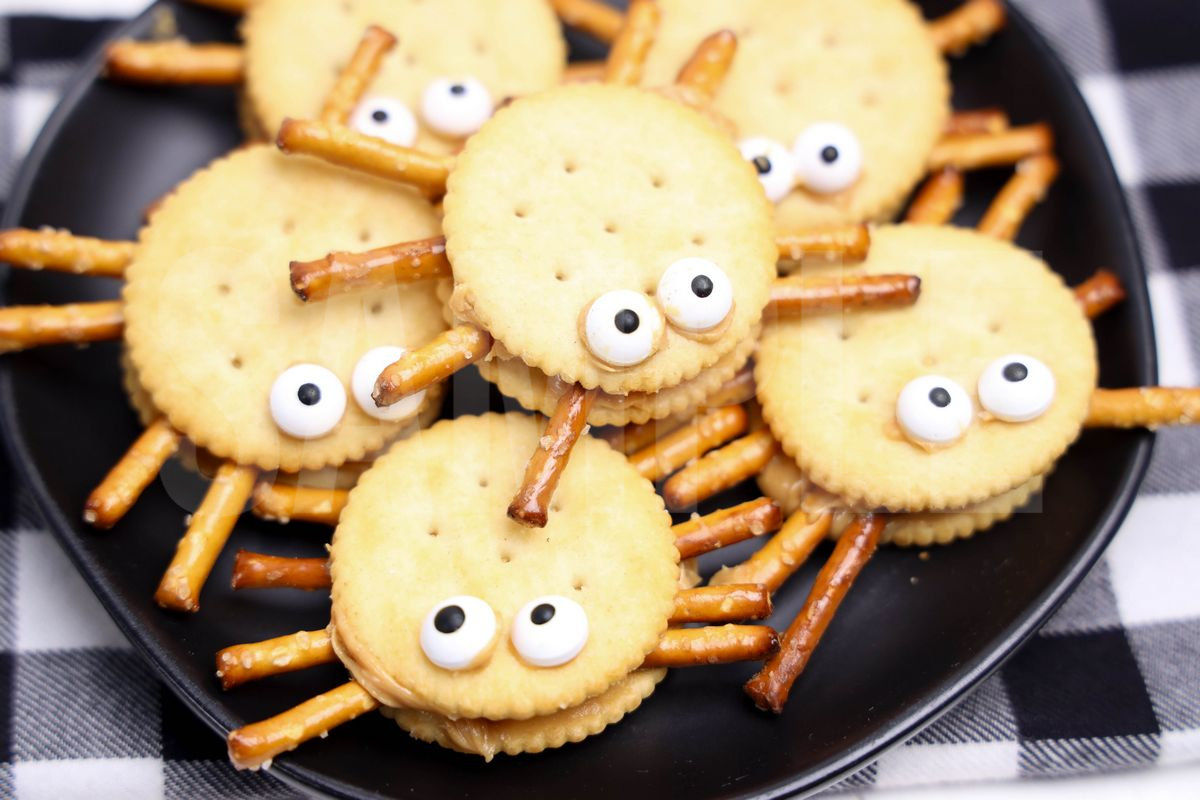 Spider Pretzels is made with ritz crackers, pretzels, peanut butter, and candy eyes. This is a semi exclusive recipe. The Spider Pretzels comes on a black plate with a white wood backdrop. Set comes with 10 in process (in process are the same for all sets) and 15 final shots (finals are different for each set) along with recipe in text format. Both vertical and horizontal shots are available for social media. One set of four. Sample removed on finals.