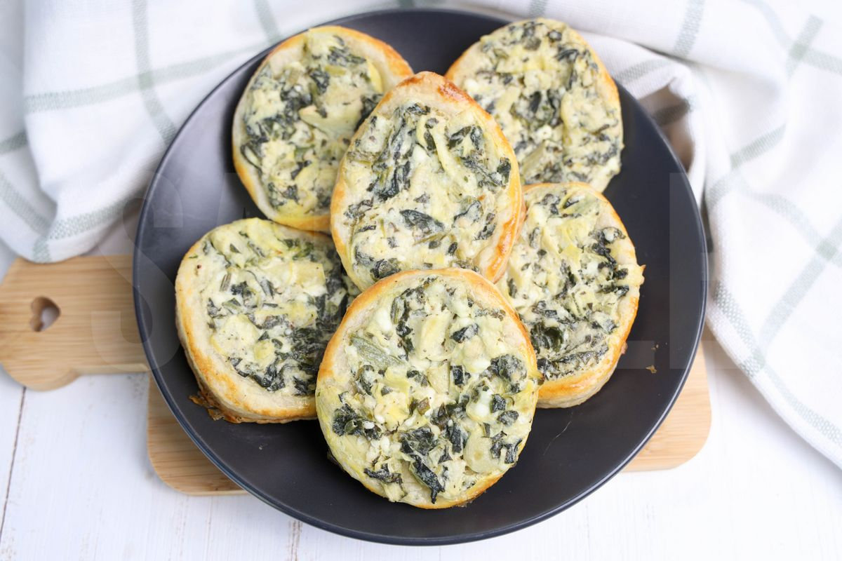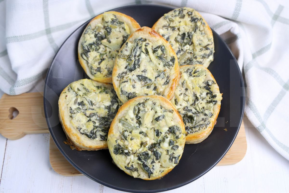 Spinach Artichoke Easter Eggs is made with frozen spinach, quartered artichokes, cream cheese, garlic, and puff pastry. This is a semi exclusive recipe. The Spinach Artichoke Easter Eggs comes on a gray plate on a wood cutting board with a green and white plaid cloth on a white wood backdrop. Set comes with 18 in process (in process are the same for all sets) and 25 final shots (finals are different for each set) along with recipe in text format. Both vertical and horizontal shots are available for social media. One set of four. Sample removed on finals.