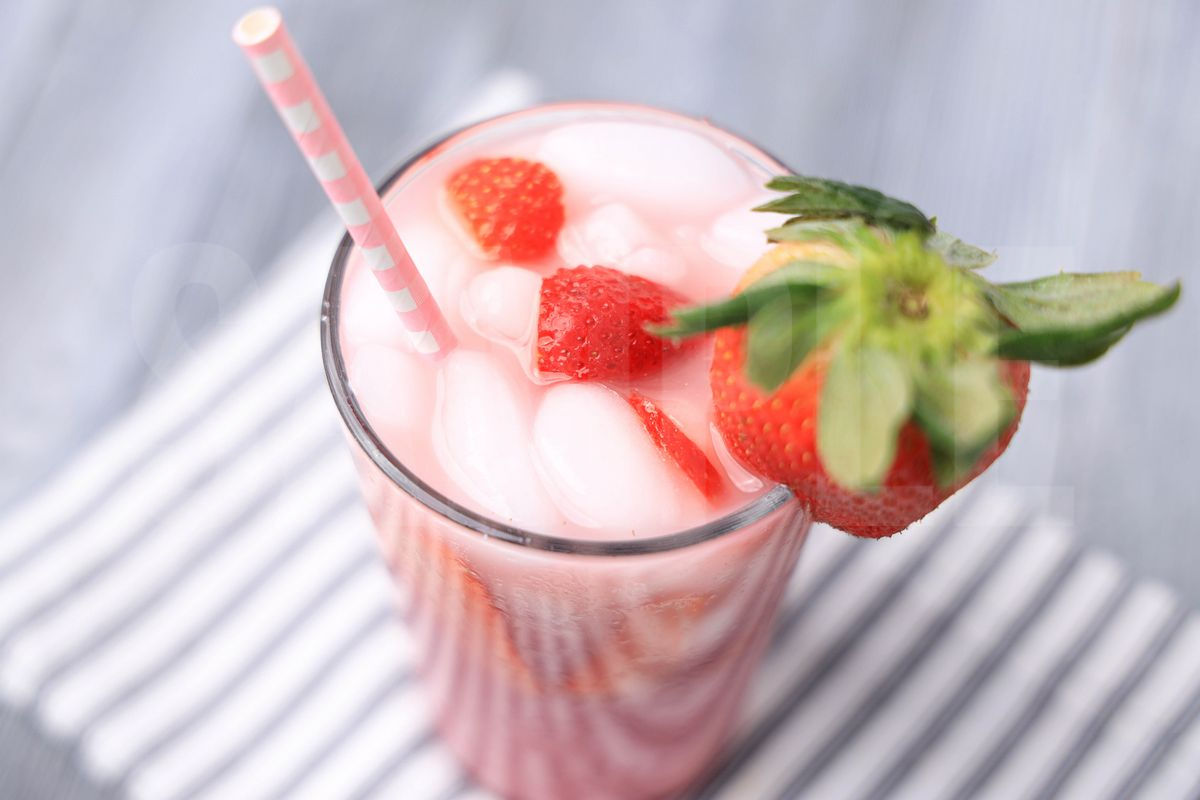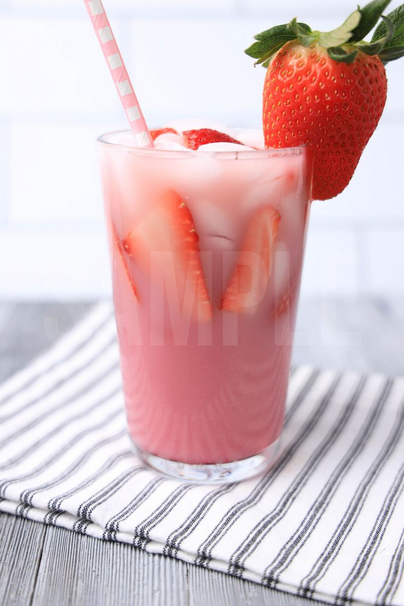 Starbucks Copycat Pink Drink is made with Tazo passionfruit, white grape juice, and fresh strawberries. This is a semi exclusive recipe. The Starbucks Copycat Pink Drink comes in a clear glass with a white striped napkin on a gray wood backdrop. Set comes with 13 in process (in process are the same for all sets) and 18 final shots (finals are different for each set) along with recipe in text format. Both vertical and horizontal shots are available for social media. One set of four. Sample removed on finals.