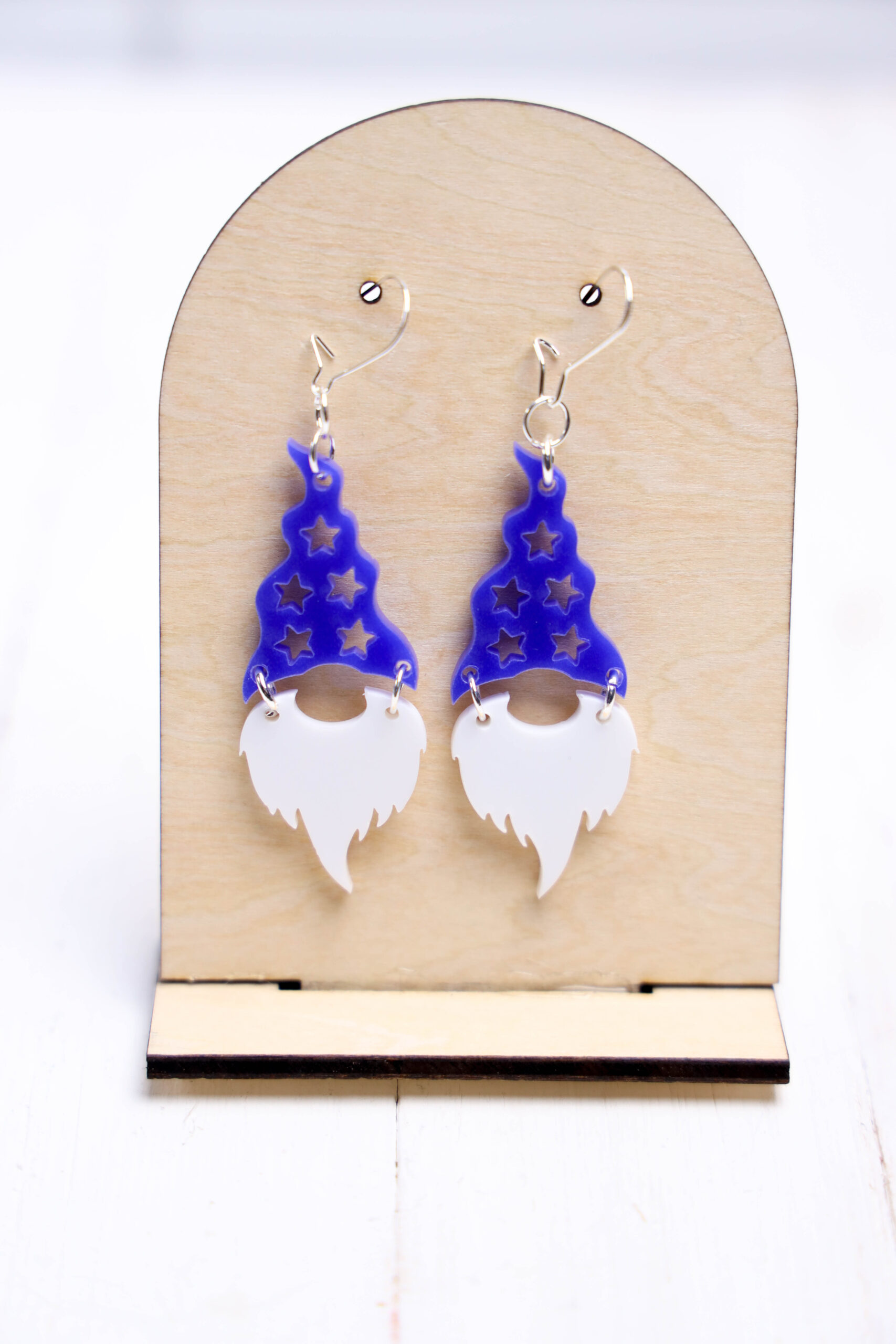 Stars Gnome Earrings Exclusive made with acrylic, xtool, and P2S. This is a exclusive craft. The Stars Gnome Earrings Exclusive on a white wood backdrop. Set comes with 10 in process and 9 final shots along with tutorial in text format, svg, and videos already sent. Both vertical and horizontal shots are available for social media. Sample removed on finals.