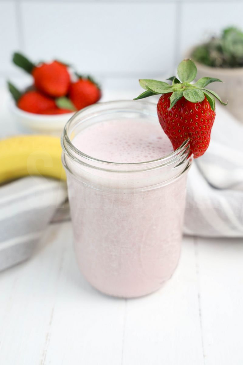 Strawberry Banana Smoothie is made with bananas, strawberries, honey, and milk (coconut milk as option). This is a limited PLR recipe. The Strawberry Banana Smoothie comes in a mason jar with a grey and white plaid cloth on white wood backdrop. Set comes with 15 in process and 34 final shots (all sets in PLR are the same) along with recipe in text format. Both vertical and horizontal shots are available for social media. 10 sets available. Sample removed on finals.