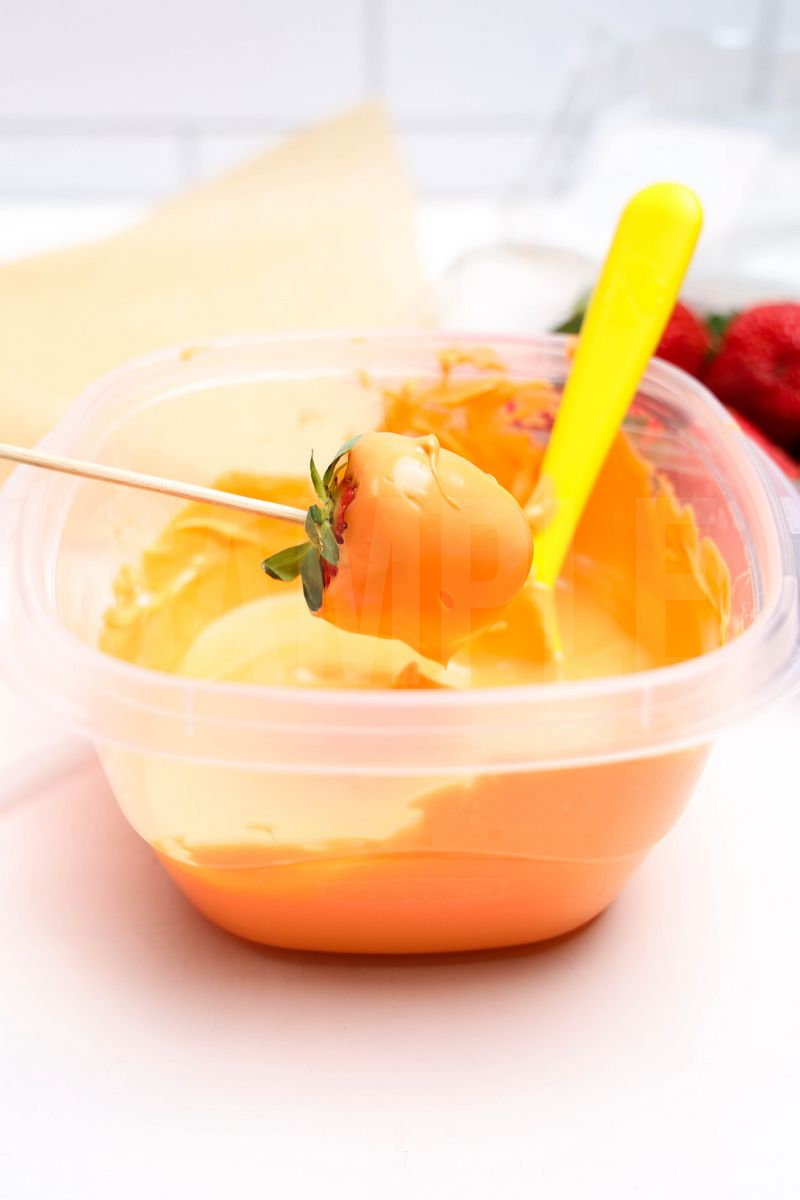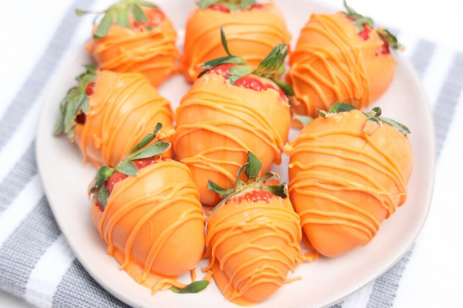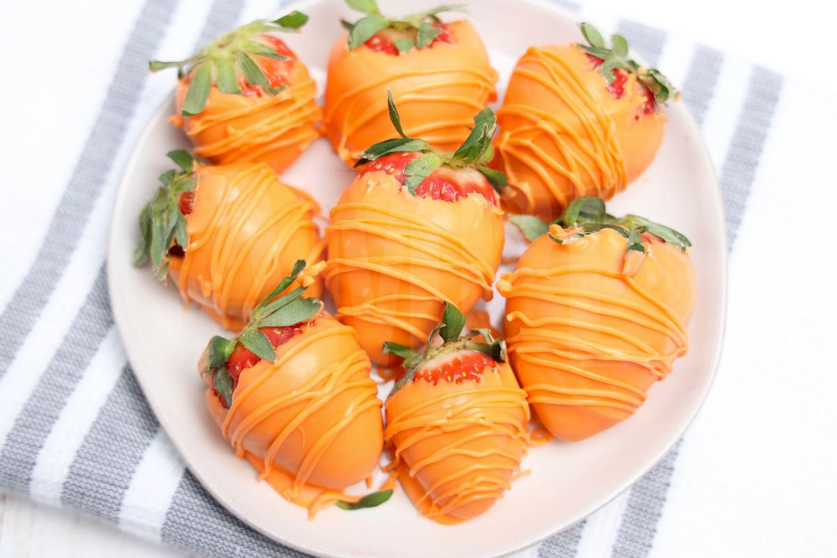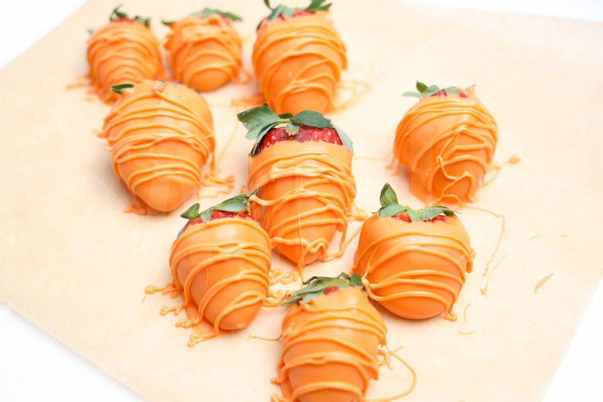 Strawberry Covered Carrots is made with orange candy melts and strawberries. This is a semi exclusive recipe. The Strawberry Covered Carrots comes in a white plate on a white wood backdrop. Set comes with 14 in process (in process are the same for all sets) and 16 final shots (finals are different for each set) along with recipe in text format. Both vertical and horizontal shots are available for social media. One set of four. Sample removed on finals.