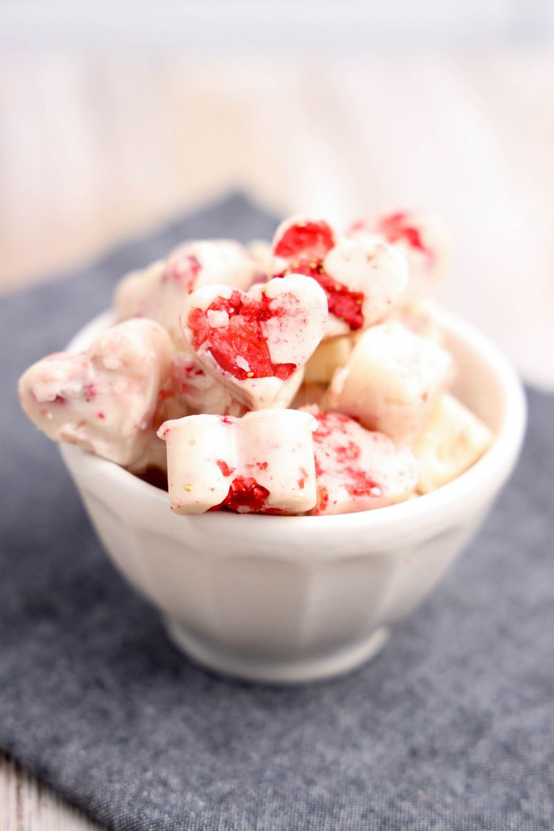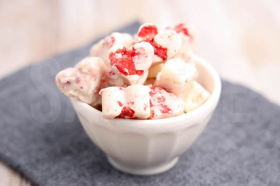 Strawberry Fudge Hearts is made with white chocolate chips, dried strawberries, and sweetened condensed milk. This is a semi exclusive recipe. The Strawberry Fudge Hearts comes in a white bowl with a denim napkin on a rustic wood backdrop. Set comes with 7 in process (in process are the same for all sets) and 19 final shots (finals are different for each set) along with recipe in text format. Both vertical and horizontal shots are available for social media. One set of four. Sample removed on finals.