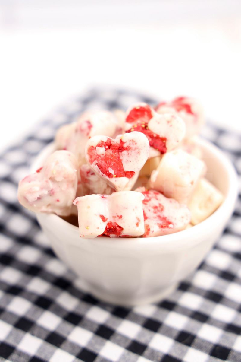 Strawberry Fudge Hearts is made with white chocolate chips, dried strawberries, and sweetened condensed milk. This is a semi exclusive recipe. The Strawberry Fudge Hearts comes in a white bowl with a plaid napkin on a white wood backdrop. Set comes with 7 in process (in process are the same for all sets) and 19 final shots (finals are different for each set) along with recipe in text format. Both vertical and horizontal shots are available for social media. One set of four. Sample removed on finals.