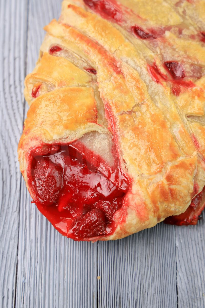 Strawberry Puff Pastry Braid is made with cream cheese, strawberry filling, and puff pastry. This is a semi exclusive recipe. The Strawberry Puff Pastry Braid comes on a olive wood board on a gray wood backdrop. Set comes with 8 in process (in process are the same for all sets) and 16 final shots (finals are different for each set) along with recipe in text format. Both vertical and horizontal shots are available for social media. One set of four. Sample removed on finals.