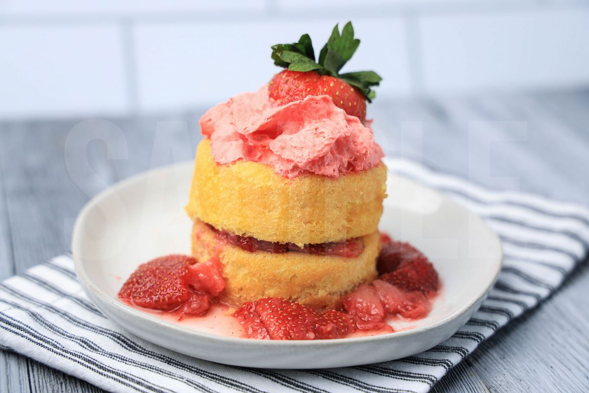 Strawberry Shortcake is made with sugar, strawberries, and strawberry whipped topping. This is a semi exclusive recipe. The Strawberry Shortcake comes on a white plate with a white striped napkin on a gray wood backdrop. Set comes with 10 in process (in process are the same for all sets) and 16 final shots (finals are different for each set) along with recipe in text format. Both vertical and horizontal shots are available for social media. One set of four. Sample removed on finals.