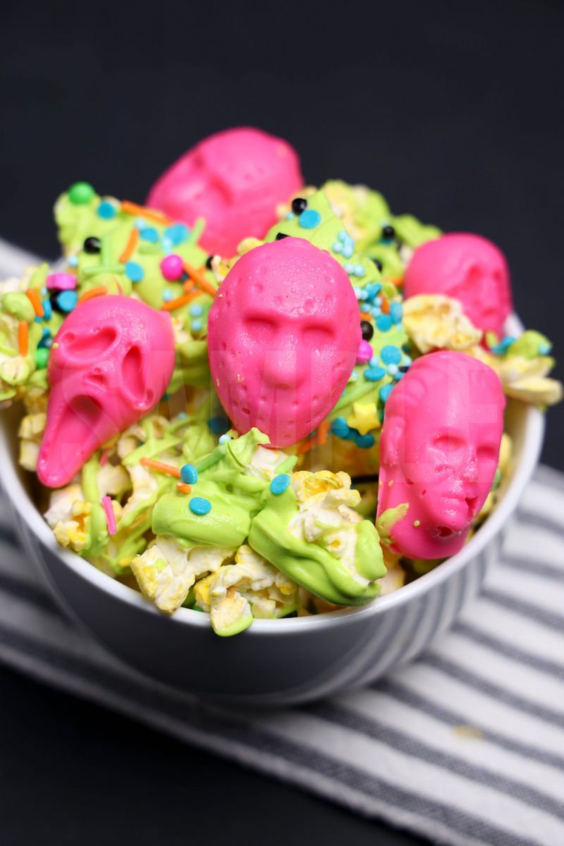 Summerween Slasher Popcorn is made with candy melts, popcorn, and sprinkles. This is a semi exclusive recipe. The Summerween Slasher Popcorn comes on a white bowl with black wood backdrop. Set comes with 13 in process (in process are the same for all sets) and 18 final shots (finals are different for each set) along with recipe in text format. Both vertical and horizontal shots are available for social media. One set of four. Sample removed on finals.