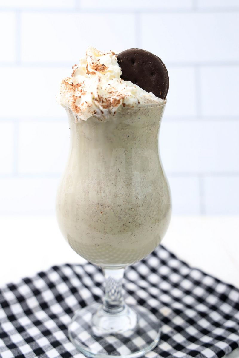 Thin Mint Shake is made with thin mint girl scout cookies, mint chocolate chip ice cream, and whipped topping. This is a semi exclusive recipe. Thin Mint Shake comes in a clear glass with a plaid napkin on a white wood backdrop. Set comes with 7 in process (in process are the same for all sets) and 13 final shots (finals are different for each set) along with recipe in text format. Both vertical and horizontal shots are available for social media. One set of four. Sample removed on finals.