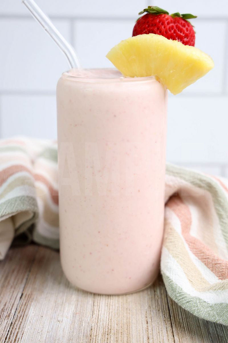 Tropical Fruit Smoothie is made with mango, honey, peaches, pineapple, banana, and milk (can sub coconut or oat milk). This is a semi exclusive recipe. The tropical fruit smoothie comes in a glass can glass with rustic wood backdrop. Set comes with 13 in process (in process are the same for all sets) and 18 final shots (finals are different for each set) along with recipe in text format. Both vertical and horizontal shots are available for social media. One set of four. Sample removed on finals.