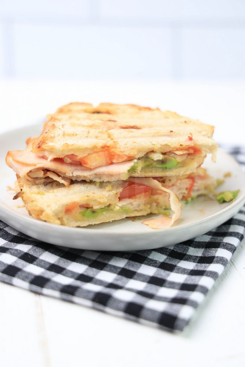 Turkey Avocado Panini is made with turkey, tomatoes, and avocado. This is a semi exclusive recipe. The Turkey Avocado Panini comes on a white plate with a plaid napkin on a white wood backdrop. Set comes with 5 in process (in process are the same for all sets) and 18 final shots (finals are different for each set) along with recipe in text format. Both vertical and horizontal shots are available for social media. One set of four. Sample removed on finals.