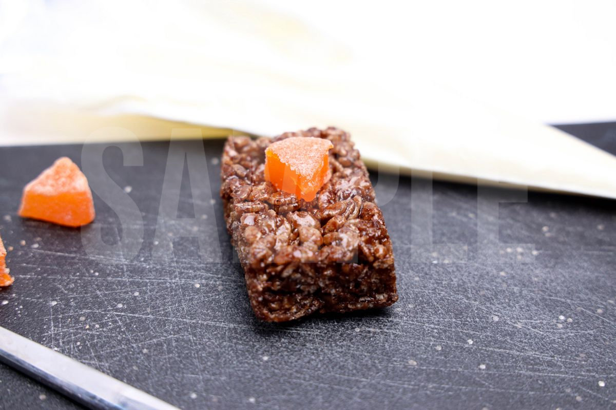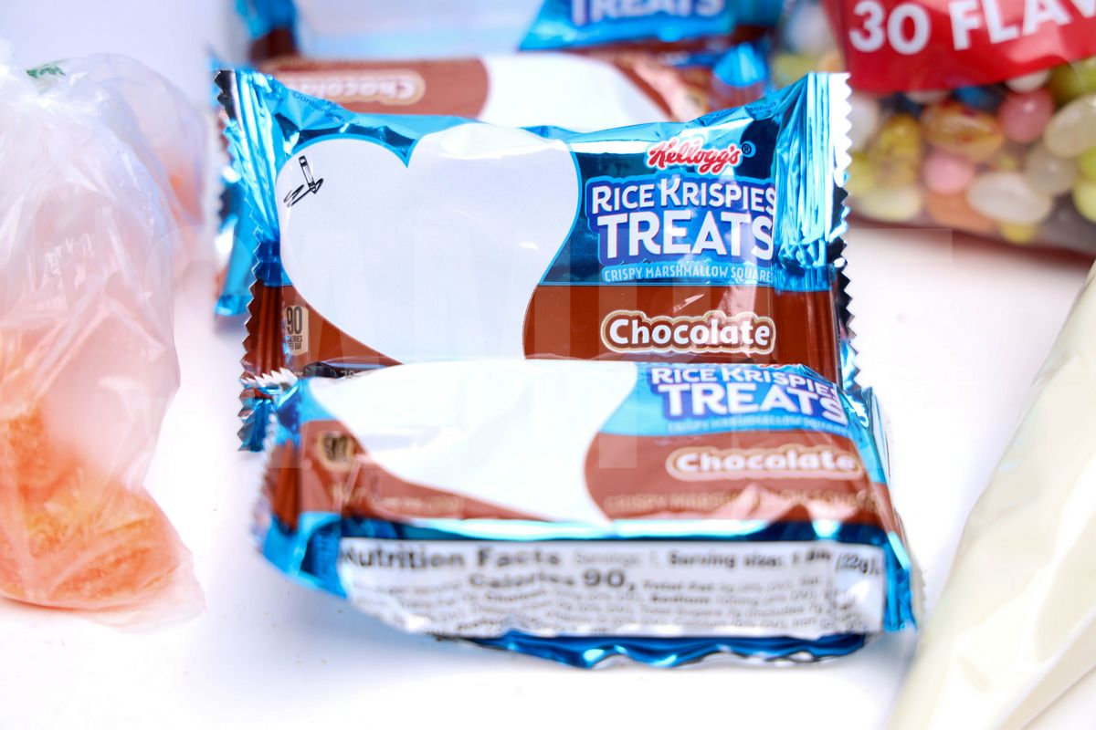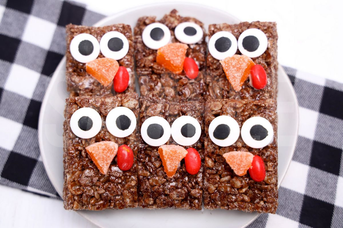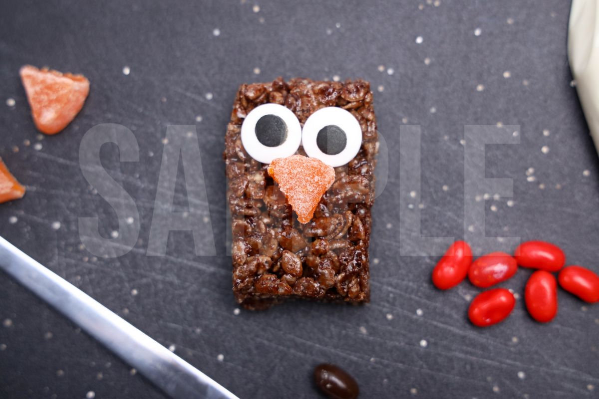 Turkey Rice Krispies Treats is made with chocolate rice krispies, orange slice gummies, red jelly beans, and candy eyes. This is a semi exclusive recipe. The Turkey Rice Krispies Treats comes on a white plate with a white wood backdrop. Set comes with 5 in process (in process are the same for all sets) and 16 final shots (finals are different for each set) along with recipe in text format. Both vertical and horizontal shots are available for social media. One set of four. Sample removed on finals.