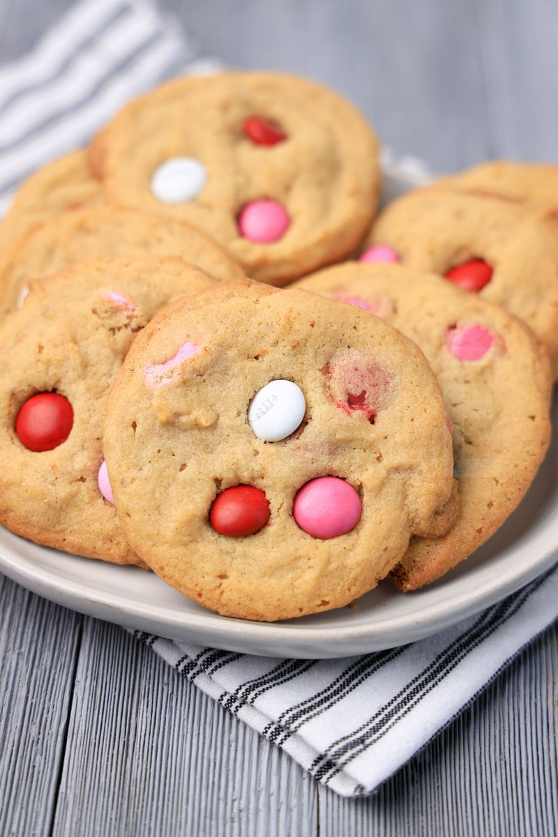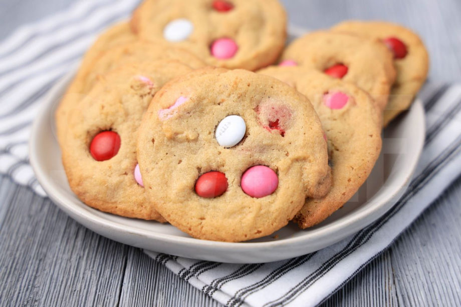 Valentine’s M&M Cookies is made with sugar, peanut butter, and Valentine’s M&M’s. This is a semi exclusive recipe. The Valentine’s M&M Cookies comes on a white plate with a white striped napkin on a gray wood backdrop. Set comes with 14 in process (in process are the same for all sets) and 16 final shots (finals are different for each set) along with recipe in text format. Both vertical and horizontal shots are available for social media. One set of four. Sample removed on finals.