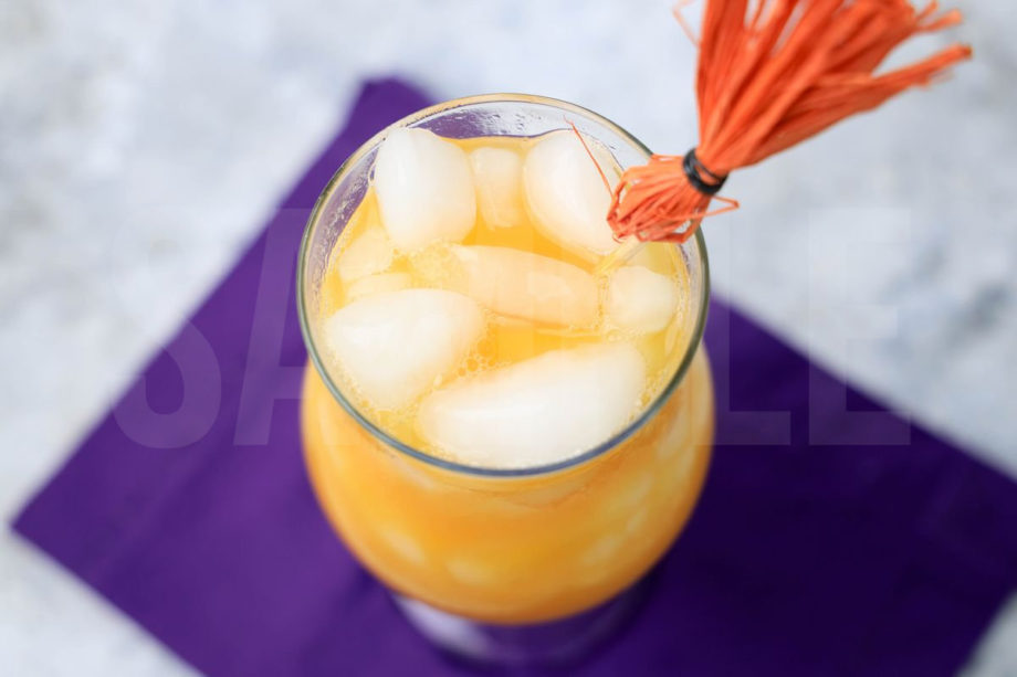 Winifred Sanderson Hocus Pocus Cocktail is made with mango bolthhouse, rum, and simply orange juice. This is a semi exclusive recipe. The Winifred Sanderson Hocus Pocus Cocktail comes in a glass with a purple napkin on a marble backdrop. Set comes with 6 in process (in process are the same for all sets) and 16 final shots (finals are different for each set) along with recipe in text format. Both vertical and horizontal shots are available for social media. One set of four. Sample removed on finals.